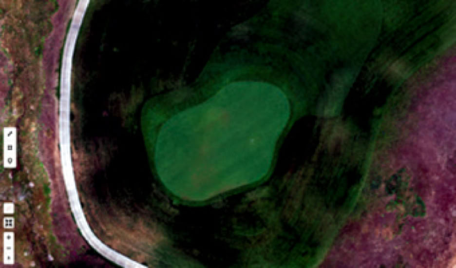 通常の空撮写真。緑色地帯、枯れた場所、土地などが目視できる
